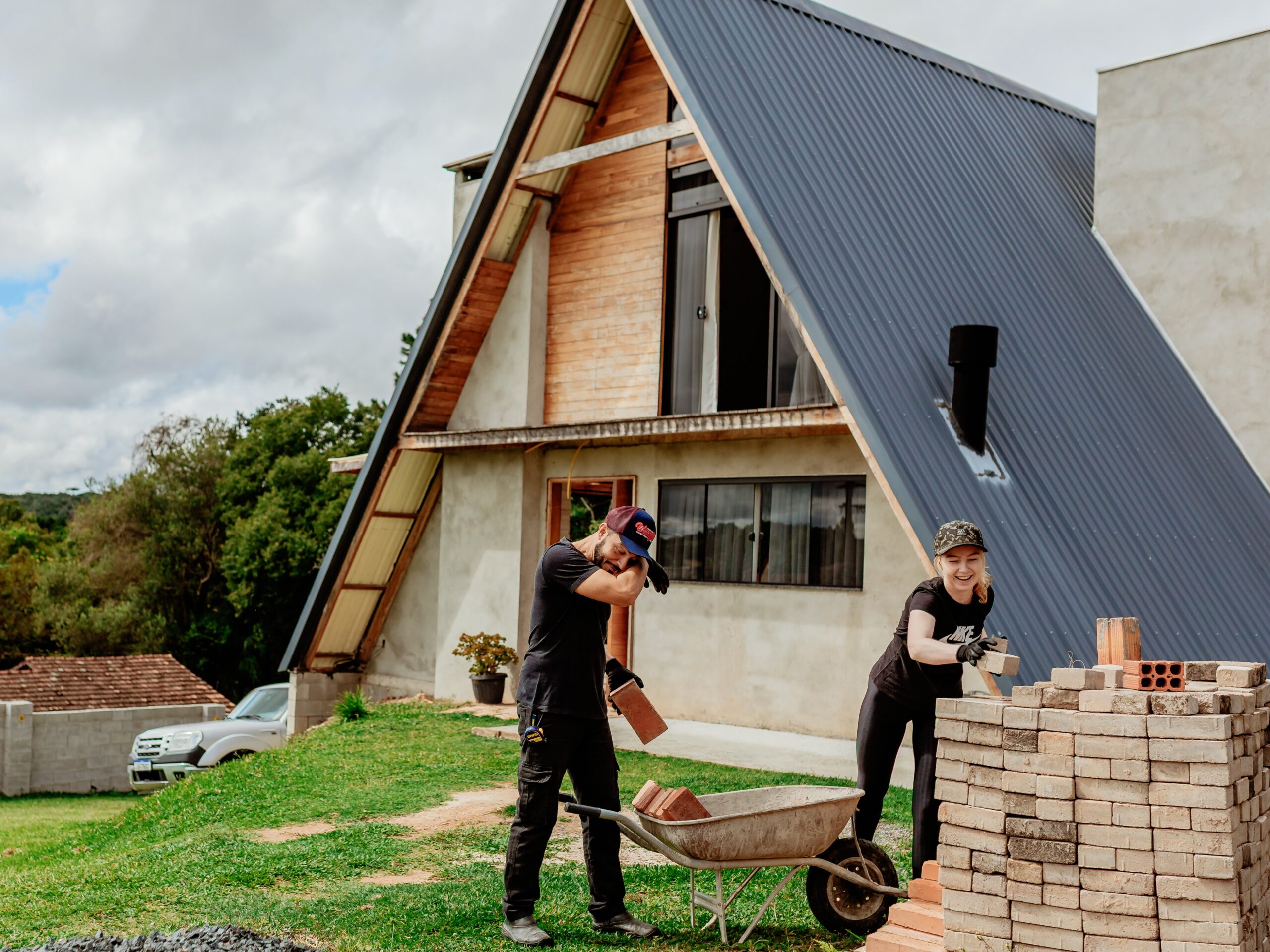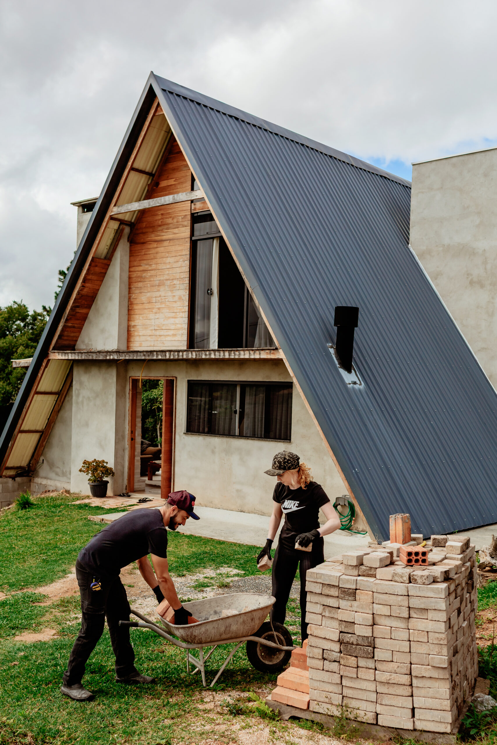 Oi, somos o Mateus e a Ale! Ele, empresário; ela, dona de casa e secretária dele hehe. Nossa história começou em 2019, quando nos conhecemos. Logo nos primeiros meses de namoro, já falávamos sobre o futuro e sonhávamos com nossa casa ideal. Em 2020, o papo ficou sério: planejávamos casamento e pensávamos em como seria o nosso lar. Desenhamos várias plantas, mas nada parecia perfeito (sim, somos bem exigentes! haha). Foi então que em 2020 nos deparamos com um universo cheio de chalés e cabanas. Foi aí que o Mateus teve uma ideia que mudou tudo: “E se a gente morasse em um chalé?”.