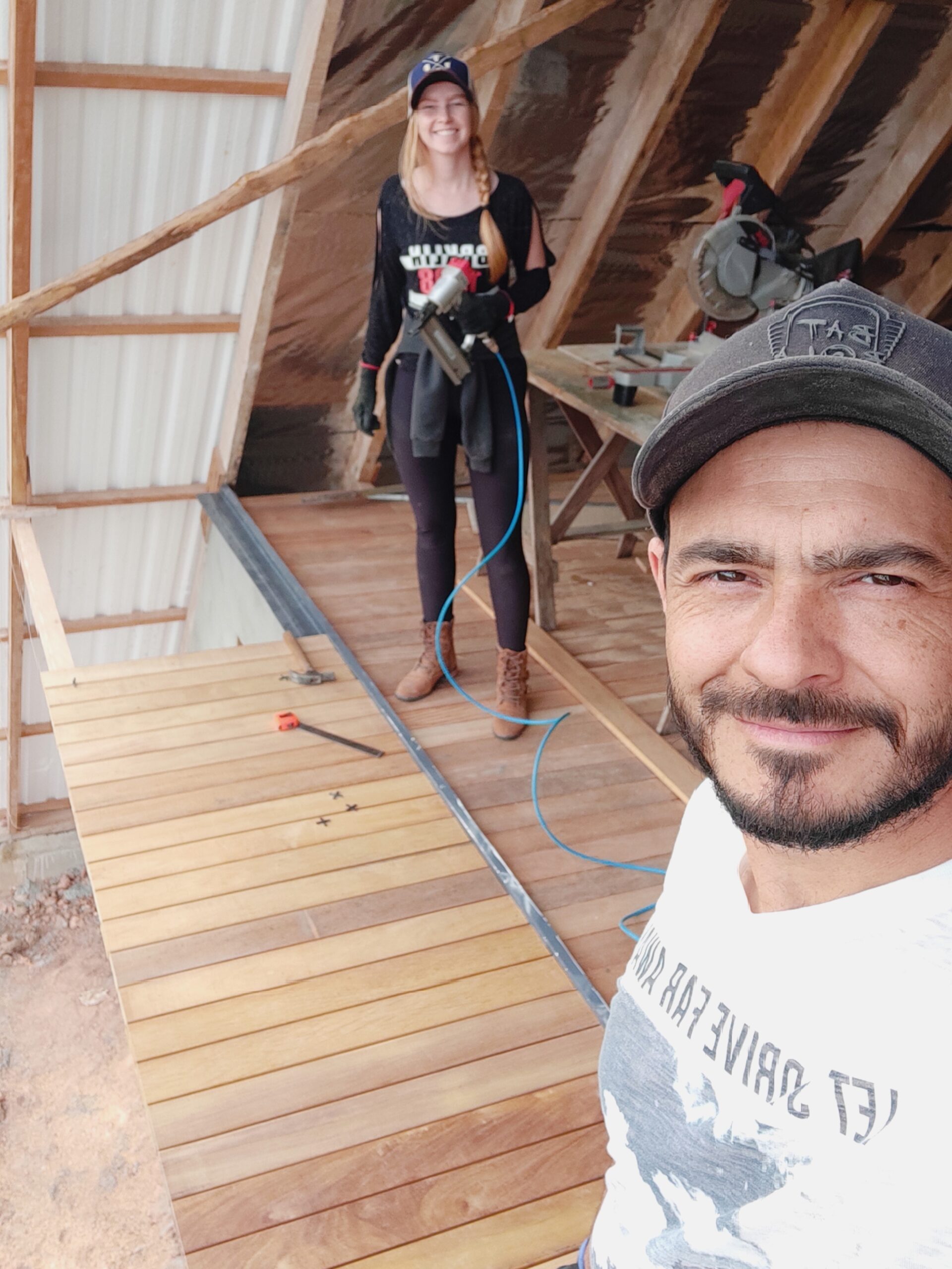 A partir daí, mergulhamos em pesquisas sobre tamanhos, modelos, ângulos e designs. Depois de muitos rascunhos no SketchUp, chegamos a algo que nos fez brilhar os olhos. Em 2021, levamos nosso projeto para a arquiteta, que ajustou os detalhes e trouxe novas ideias. Em agosto daquele ano, começamos a transformar nosso sonho em realidade.