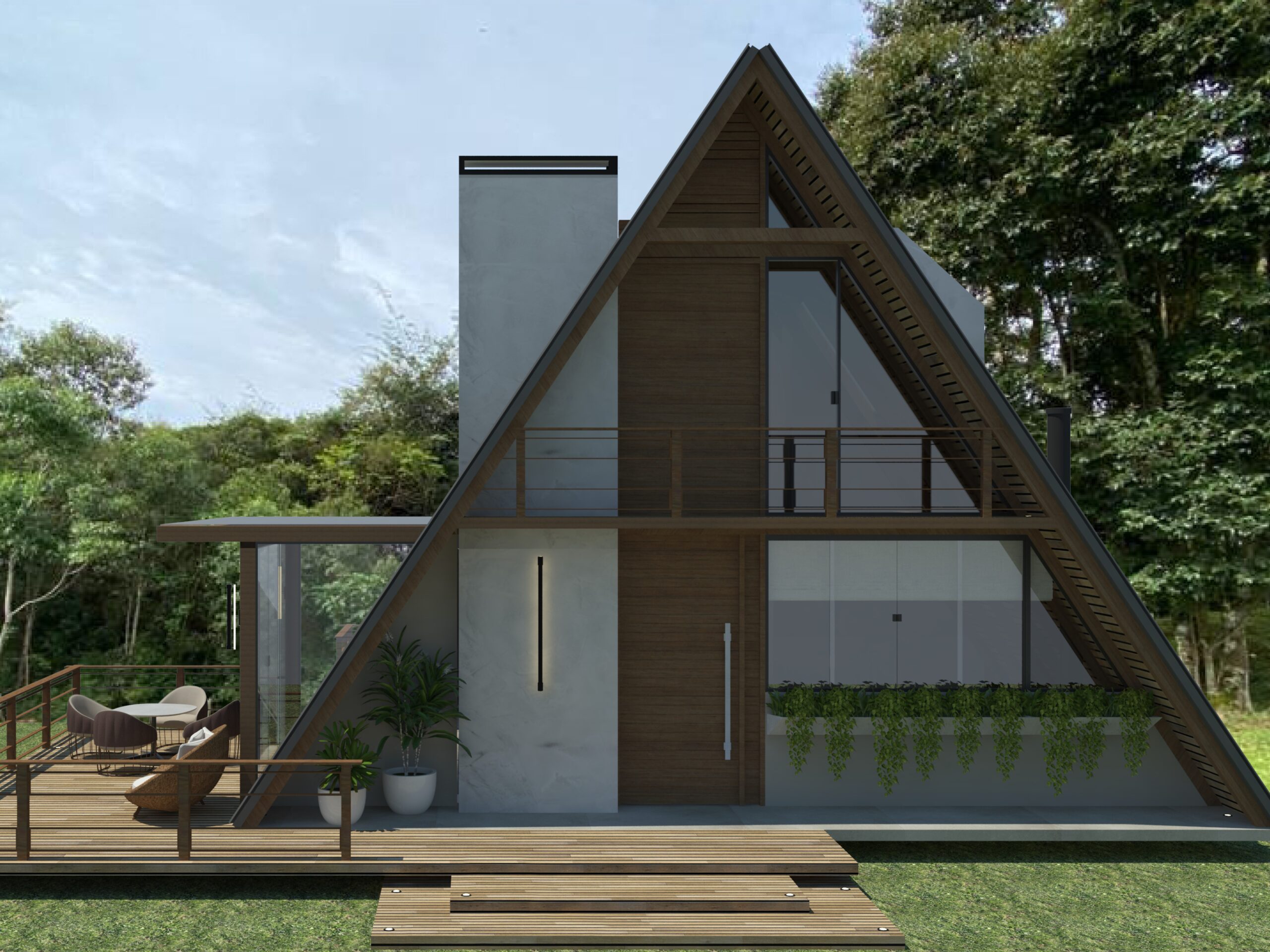 Oi, somos o Mateus e a Ale! Ele, empresário; ela, dona de casa e secretária dele hehe. Nossa história começou em 2019, quando nos conhecemos. Logo nos primeiros meses de namoro, já falávamos sobre o futuro e sonhávamos com nossa casa ideal. Em 2020, o papo ficou sério: planejávamos casamento e pensávamos em como seria o nosso lar. Desenhamos várias plantas, mas nada parecia perfeito (sim, somos bem exigentes! haha). Foi então que em 2020 nos deparamos com um universo cheio de chalés e cabanas. Foi aí que o Mateus teve uma ideia que mudou tudo: “E se a gente morasse em um chalé?”.